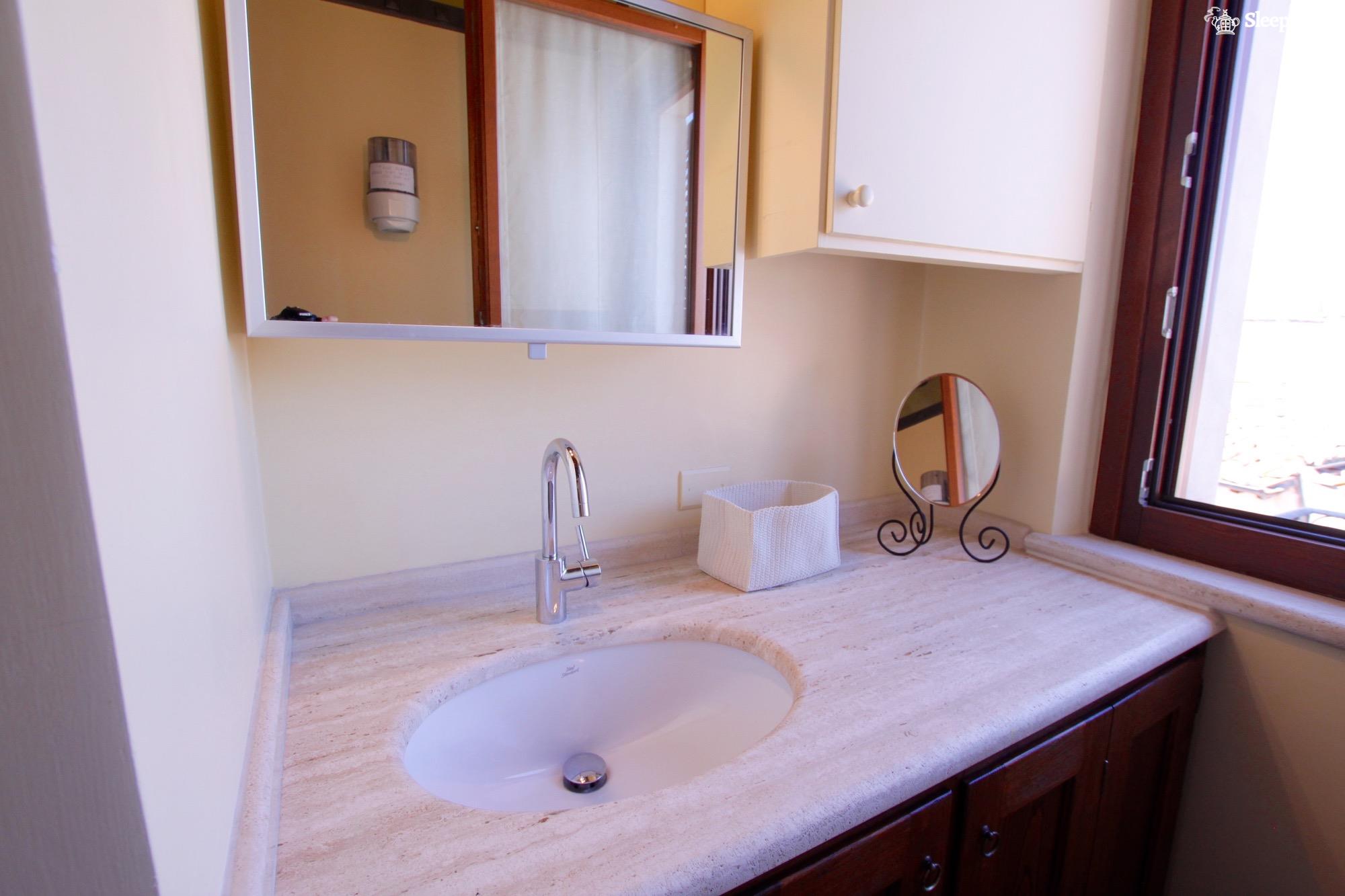 Camera da letto: 1 letto matrimoniale (cm. 160), 2 comodini, 1 armadio, 1 finestra con vista, TV, A/C, bagno en suite.