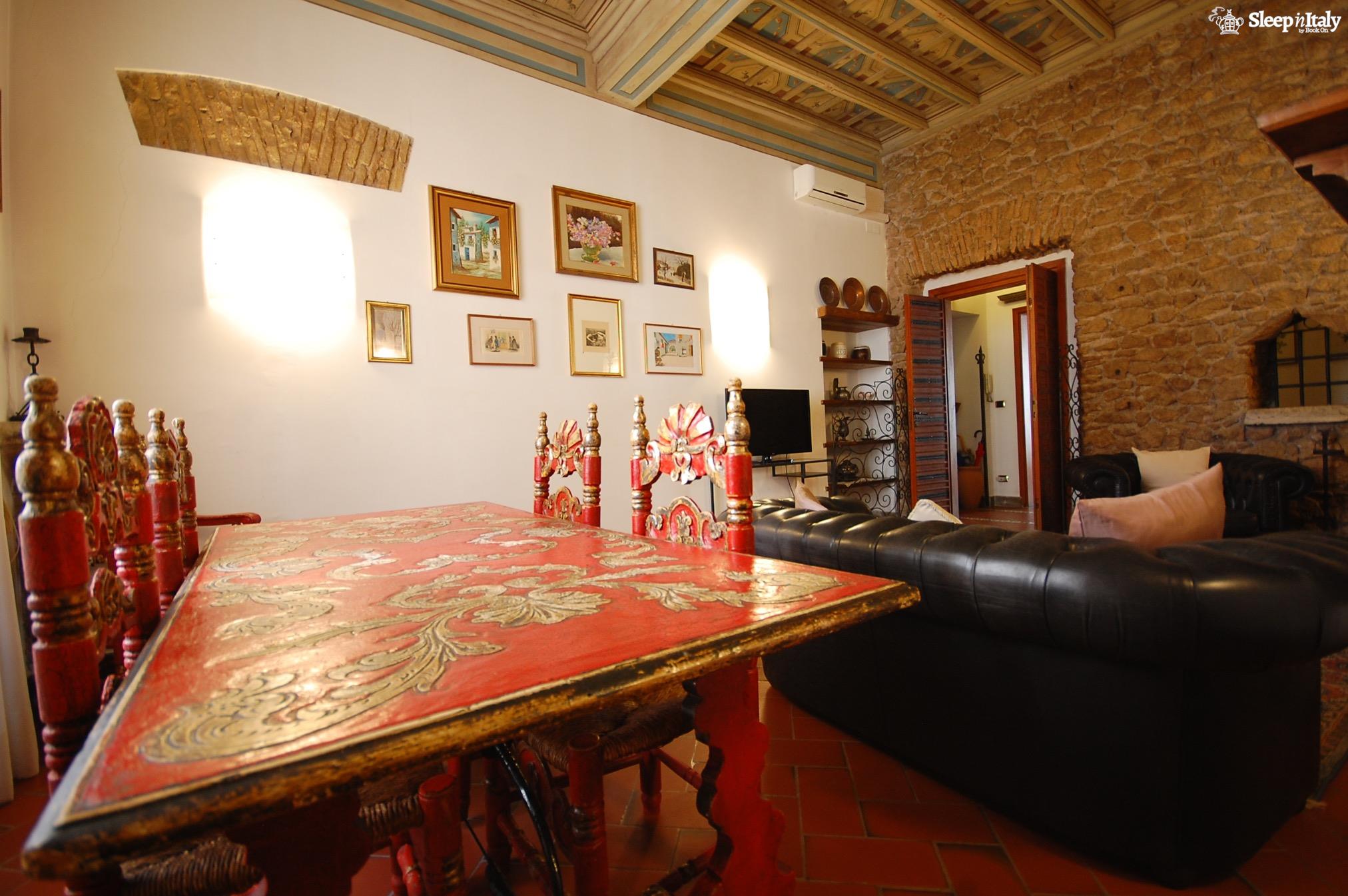 L'appartamento ha bellissimi lavori in ferro battuto ed un elegante arredamento con mobili antichi.